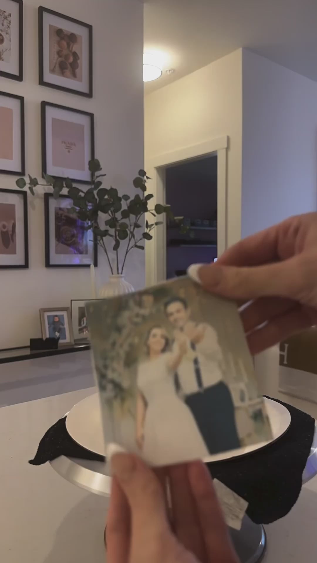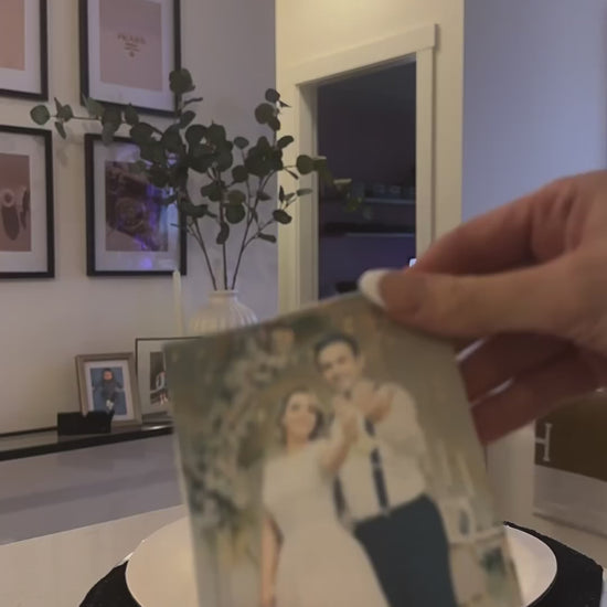 When you're ready to serve, just use a candle or lighter in the middle and hold for 8 seconds and it will naturally just burnaway itself and reveal your image or text inside.